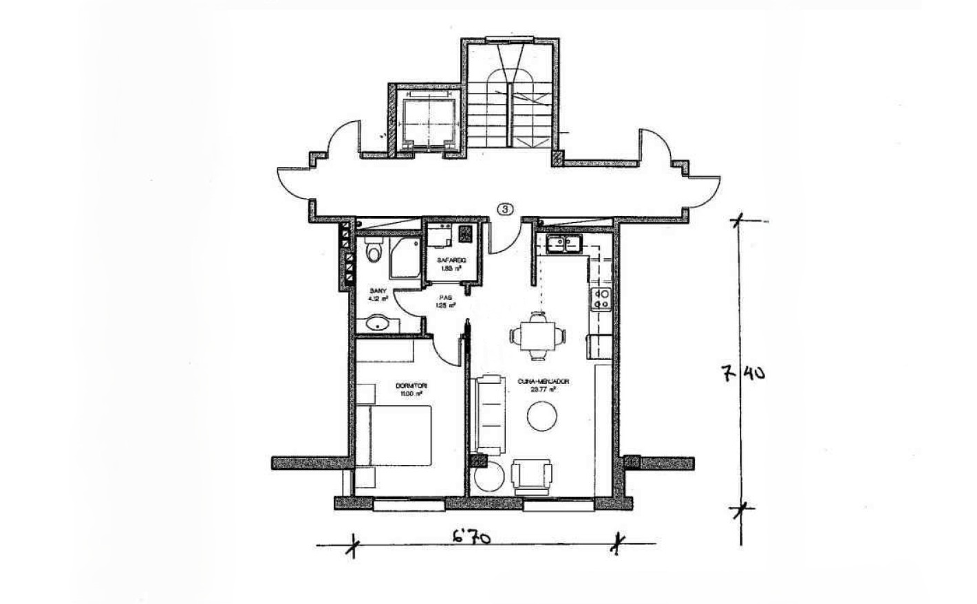 El inmueble, construido en 2008, se encuentra en la 3ª planta (última) de un edificio con ascensor y cuenta con 48 m² construidos, distribuidos en 1 habitación, 1 baño, comedor‑cocina y lavadero. Es una vivienda exterior, orientada al este, con calefacción individual, aire acondicionado y suministro de gas.