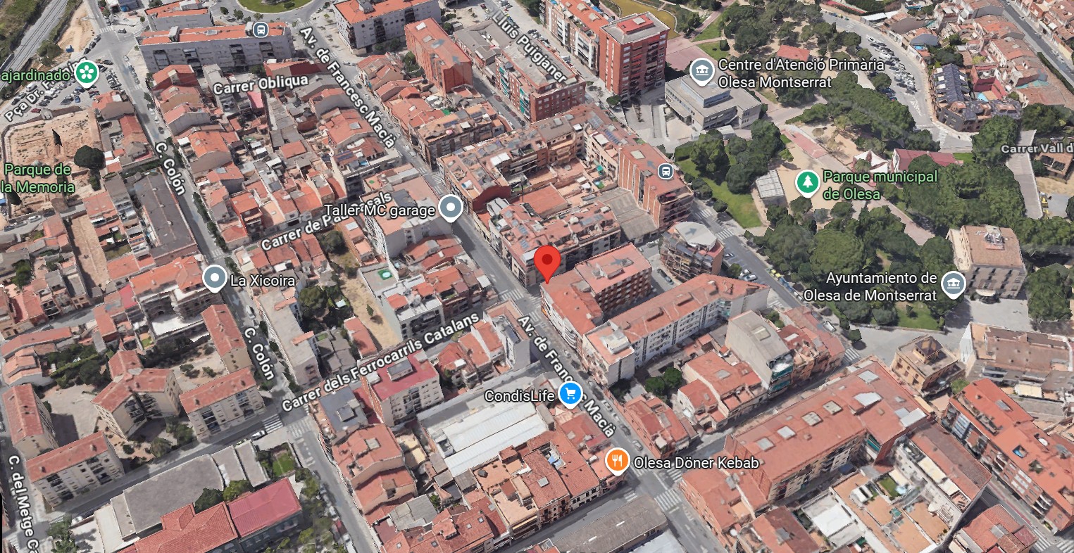 Está ubicado en la Calle Ferrocarrils Catalans 16, en una zona residencial consolidada con servicios esenciales y excelente conexión con Barcelona, ideal como vivienda habitual o inversión. Junto al Parque Municipal de Olesa y muy cerca del Ayuntamiento, disfruta de un entorno rodeado de montañas y zonas verdes que aportan un ambiente agradable para el día a día, combinando comodidad urbana con espacios abiertos para pasear, hacer deporte y disfrutar del entorno natural sin renunciar a tener todos los servicios a mano.