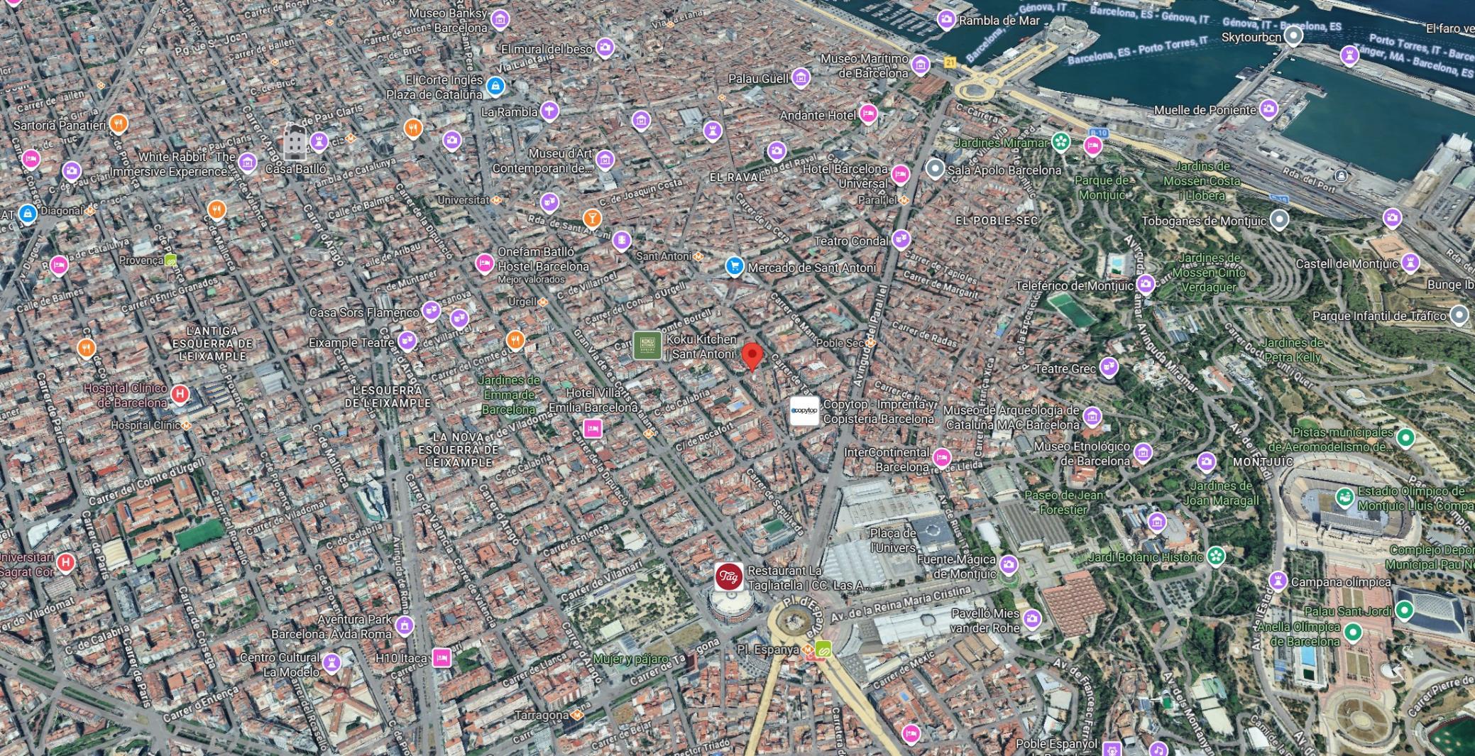 Está ubicado en la Calle Calabria 57, en pleno distrito del Eixample, una zona altamente demandada por su excelente calidad de vida, con una amplia oferta de servicios, comercios, restauración, zonas verdes y conexiones rápidas con toda Barcelona, además de encontrarse a pocos minutos de las principales playas de la ciudad.