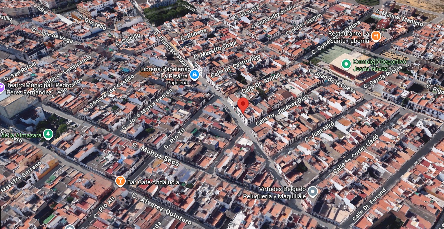 Está ubicado en la Calle Francisco Pizarro 31 (esquina Calle Dr. Jiménez Díaz 15) dentro de una zona urbana consolidada con todos los servicios esenciales y muy buena comunicación con Sevilla capital. Ideal como vivienda habitual o inversión.