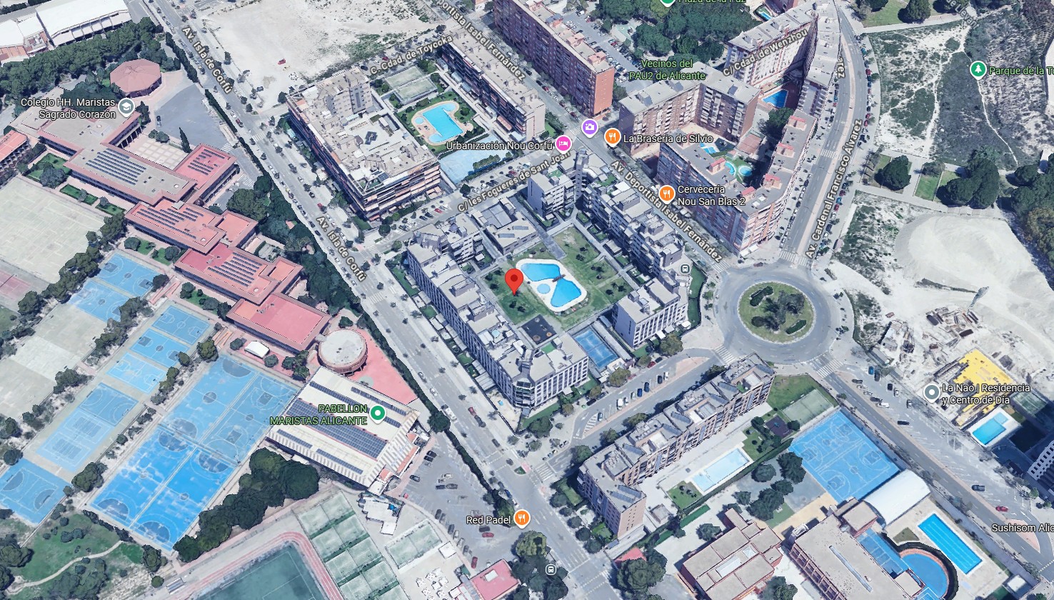 Situado en la Calle Les Fogueres de Sant Joan 2, en una zona residencial moderna del barrio de San Blas, este piso ofrece una excelente combinación de comodidad, servicios y conexiones directas con el centro de Alicante. Forma parte del Residencial Nou Corfú, un conjunto de obra nueva (2019) que destaca por su diseño actual y por contar con piscina comunitaria, amplias zonas verdes, espacios deportivos y áreas comunes concebidas para ofrecer una excelente calidad de vida. Su ubicación permite acceder fácilmente a los principales servicios del entorno y se encuentra a pocos minutos tanto del centro urbano como de las playas de Alicante, lo que lo convierte en una opción atractiva tanto para residencia habitual como para inversión.