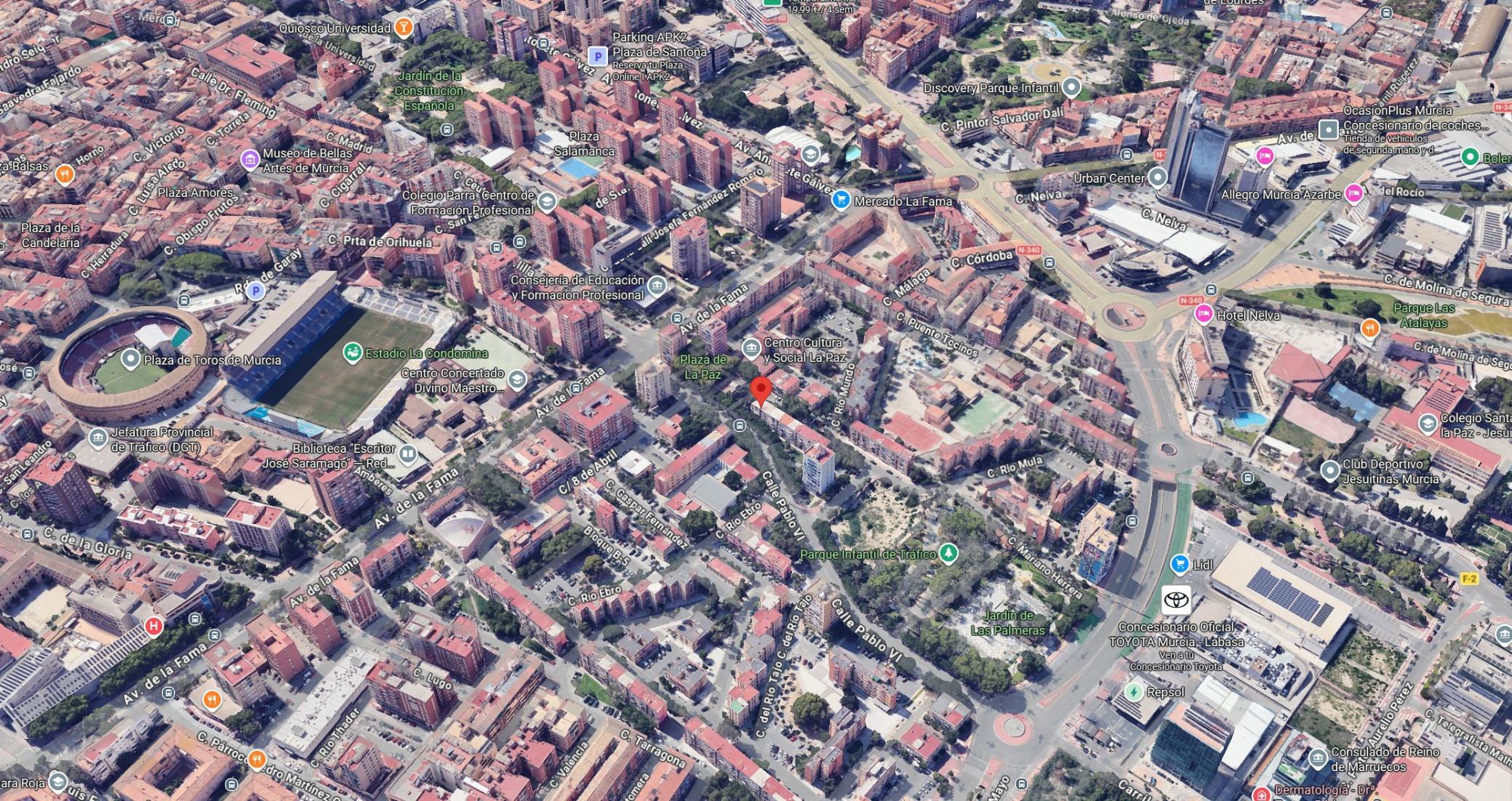 Ubicado en la Calle Mariano Herrera 19D (también conocida como Calle Río Mundo o Polígono Vistabella), en la zona de Vistabella / La Paz en Murcia capital, este entorno urbano destaca por su excelente conexión con el centro y una amplia oferta de servicios. La vivienda se sitúa junto al supermercado Lidl, muy cerca de la Plaza de Toros de Murcia, de amplias zonas verdes, del Estadio de La Condomina y de diferentes equipamientos deportivos y comerciales del barrio. Además, el área cuenta con amplias zonas de aparcamiento en superficie alrededor del edificio, lo que facilita el día a día tanto para residentes. Todo ello convierte esta ubicación en una opción atractiva tanto como vivienda habitual como para inversión residencial.