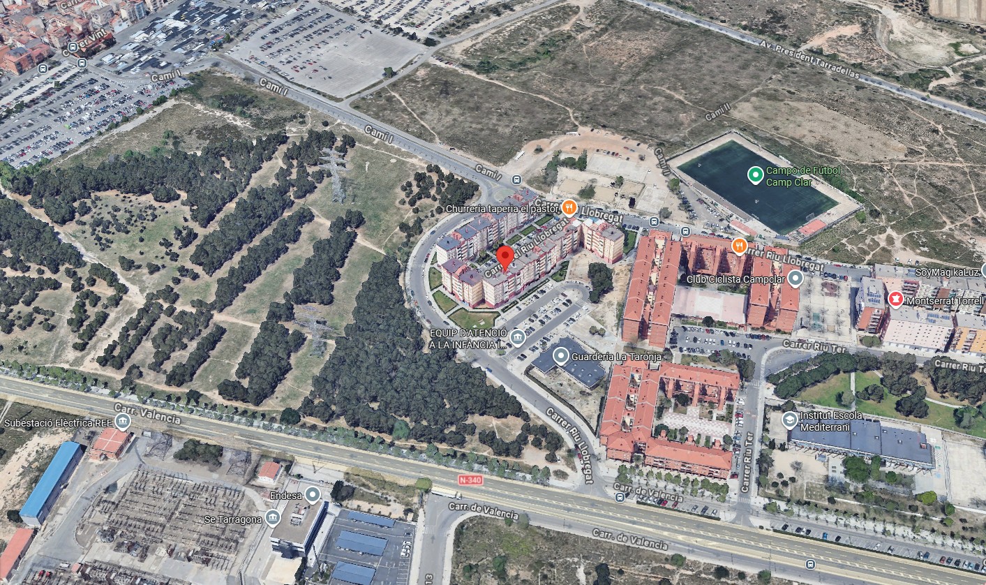 Está ubicado en la Calle Riu Llobregat 18, en la zona de Campclar (Torreforta), bien conectado con el centro de Tarragona y rodeado de servicios esenciales. Se encuentra en un entorno residencial con excelente calidad de vida, con abundantes zonas verdes, a tan solo 10 minutos de las playas de Tarragona, y próximo al Institut Escola Mediterrani, supermercados, instalaciones deportivas y todo tipo de equipamientos necesarios para el día a día.