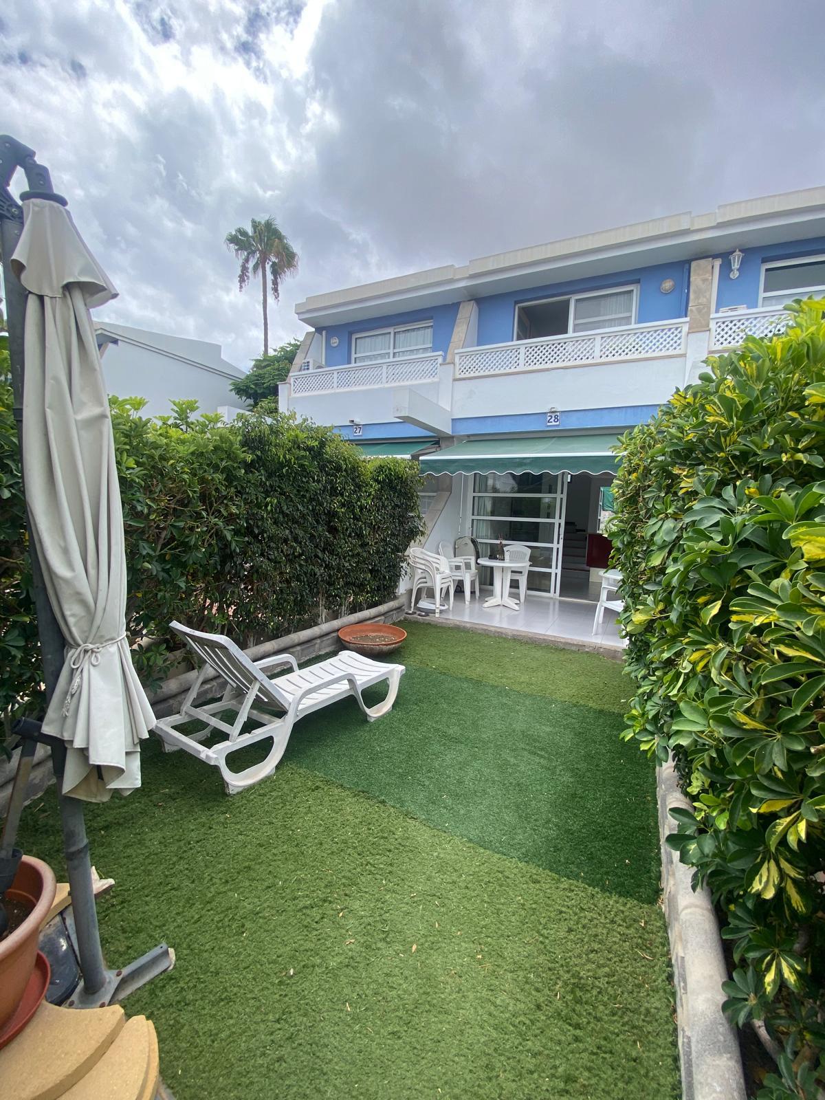 🏡 Bungalow dúplex con terraza, jardines y piscina en Maspalomas (Gran Canaria).