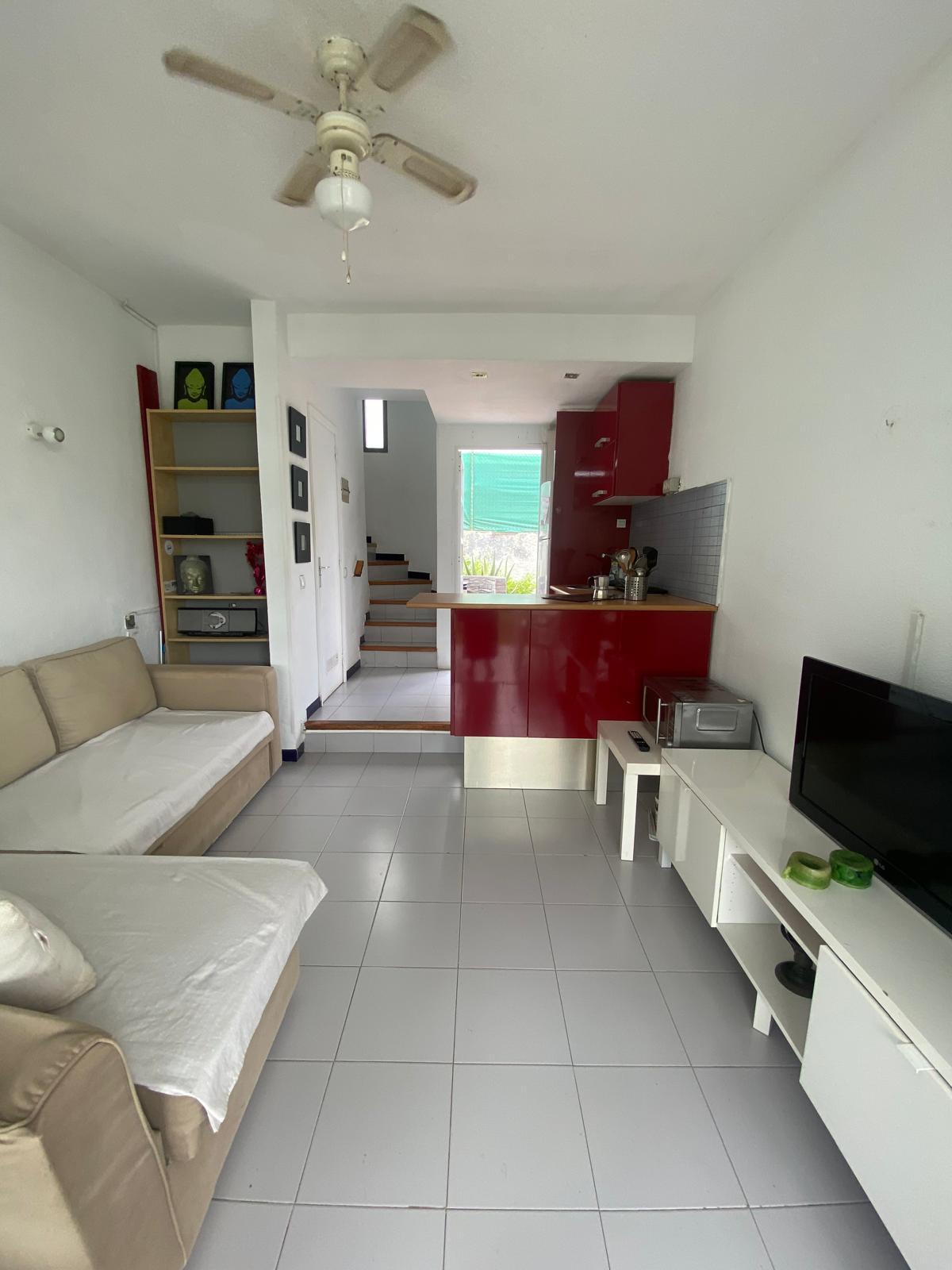 El inmueble cuenta con una superficie construida de 53 m² y se distribuye en 2 plantas. En la planta baja encontramos un luminoso salón, cocina-office, aseo, solana y una acogedora terraza de 15 m², perfecta para relajarse al sol. En la planta alta se ubica un amplio dormitorio, baño completo y un balcón privado. Dispone además de 2 jardines privativos: uno delantero de 7 m² y uno trasero de 9 m² que aportan privacidad y espacio al aire libre. Está equipada con aire acondicionado y armario empotrado. El complejo cuenta con piscina comunitaria y zonas ajardinadas.
